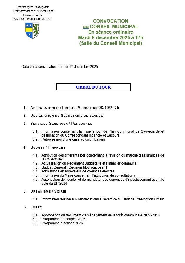 Conseil Municipal le 9 décembre 2025 – Salle du Conseil Le prochain Conseil Municipal aura lieu le 9 décembre à 17h. Les points à l’ordre du jour sont les suivants : Estelle Grandgeorge2025-12-02T11:07:09+01:0015 juillet 2025|