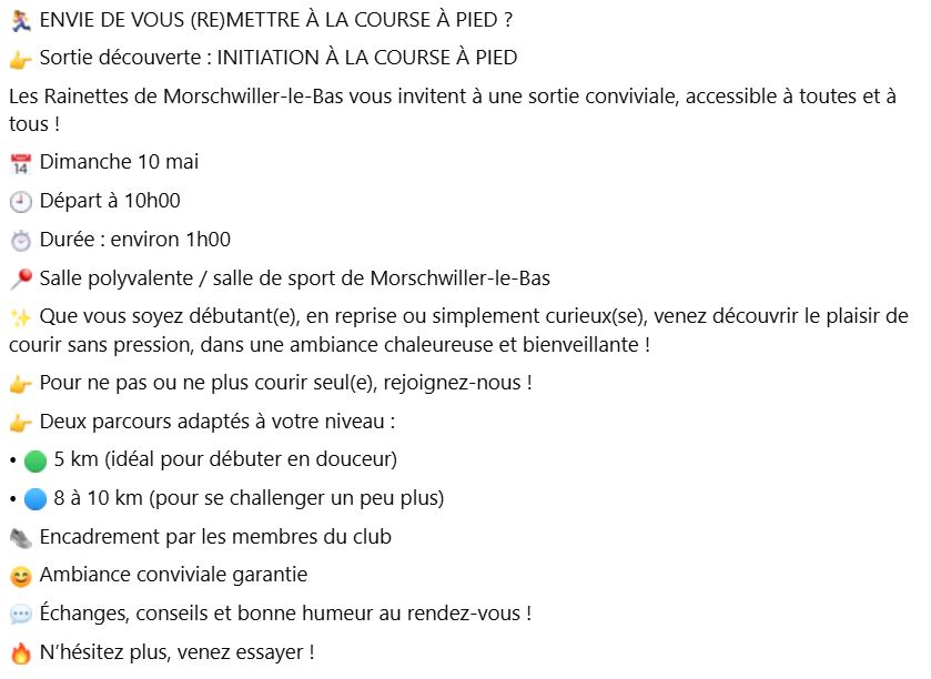 Les Rainettes : Initiation à la course à pied – 10 mai